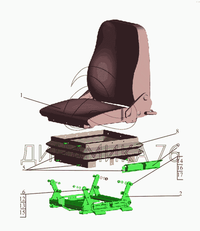 Перечень комплектующих от Сиденье водителя 6430-6800010 на МАЗ-533731