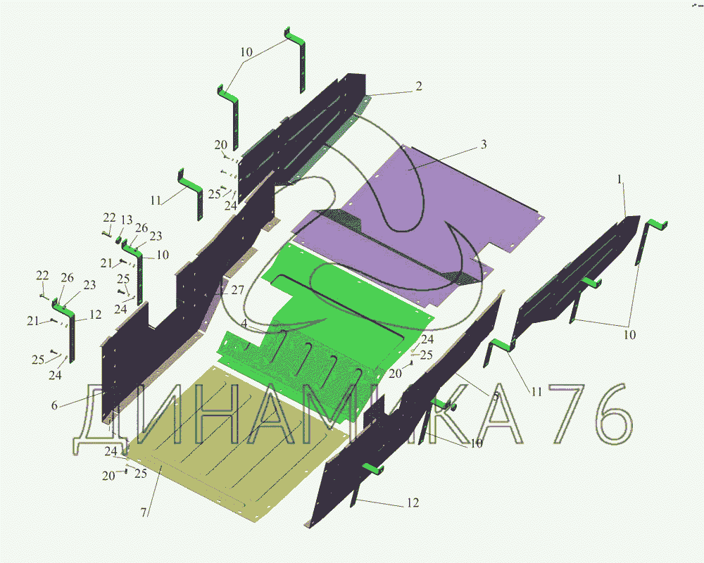 Перечень комплектующих от Установка шумоизоляционных экранов 555132-1061004 на МАЗ-533731