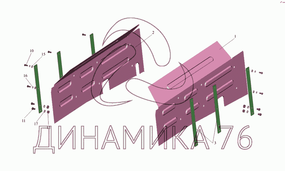 Перечень комплектующих от Установка шумоизоляционных экранов 555142-1061003 на МАЗ-533731