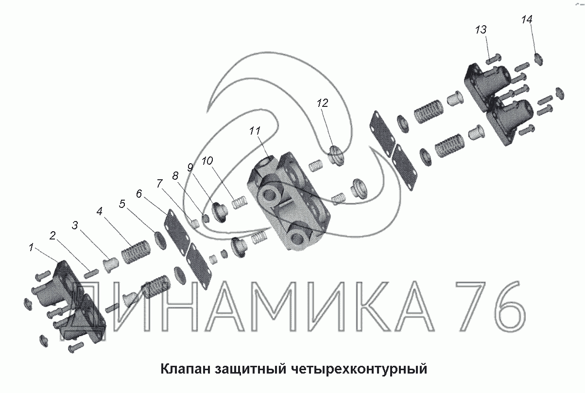 Перечень комплектующих от Клапан защитный четырехконтурный на МАЗ-533731