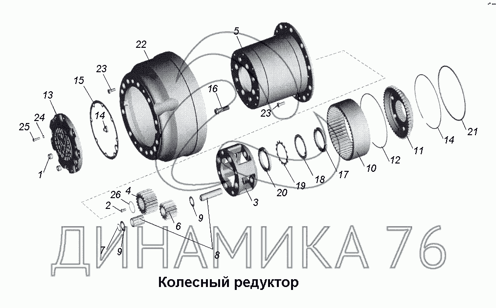 Перечень комплектующих от Колесный редуктор на МАЗ-533731