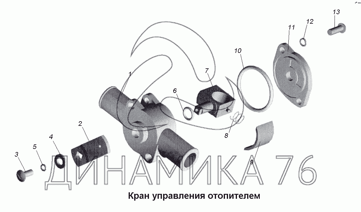 Перечень комплектующих от Кран управления отопителем на МАЗ-533731