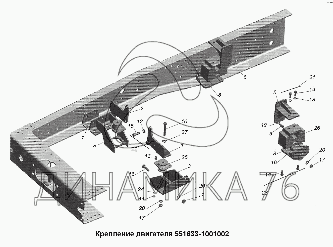 Перечень комплектующих от Крепление двигателя 551633-1001002 на МАЗ-533731