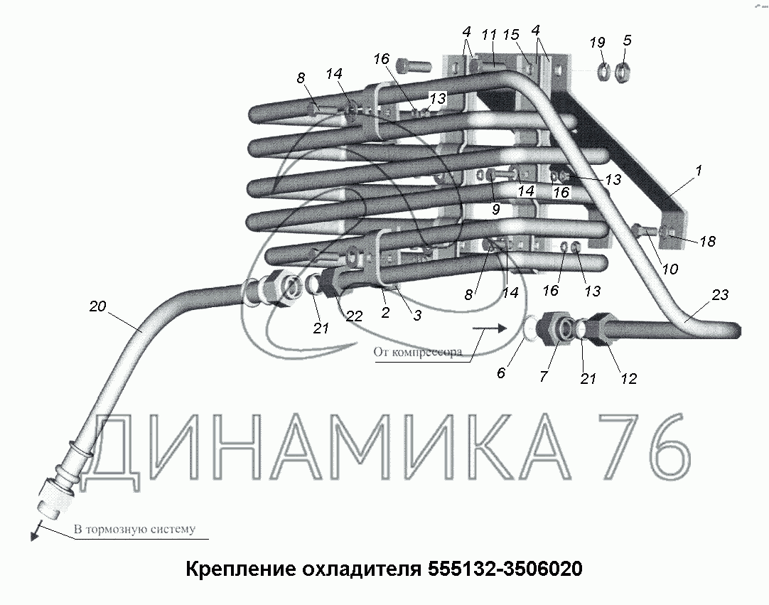 Схемы запчастей предназначены для справочных целей! Мы продаем не все запчасти от Крепление охладителя 555132-3506020 на МАЗ-533731, представленные в этом списке.