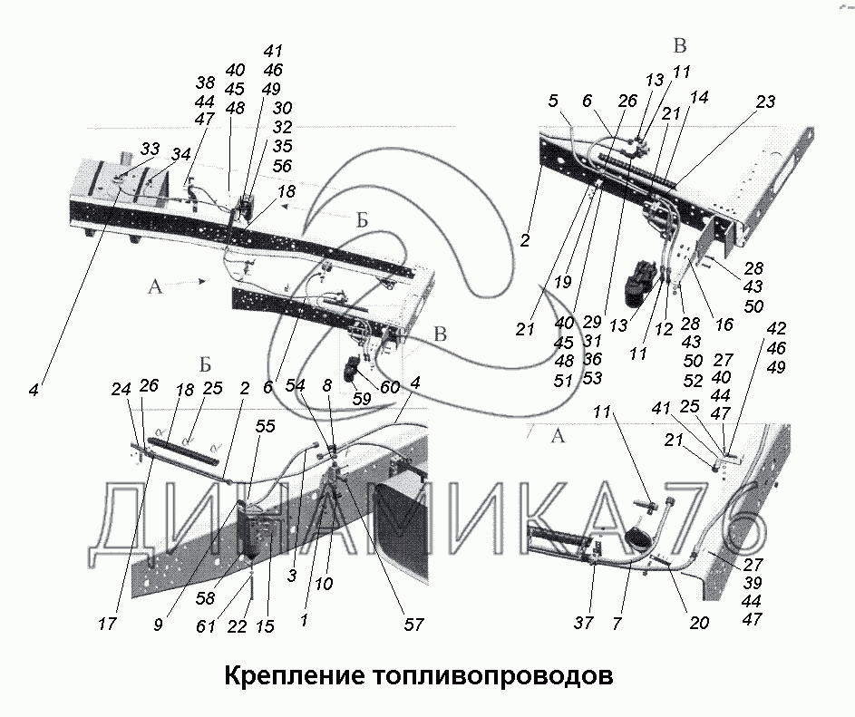Крепление топливопроводов на МАЗ-533731 (до 2012 г.)