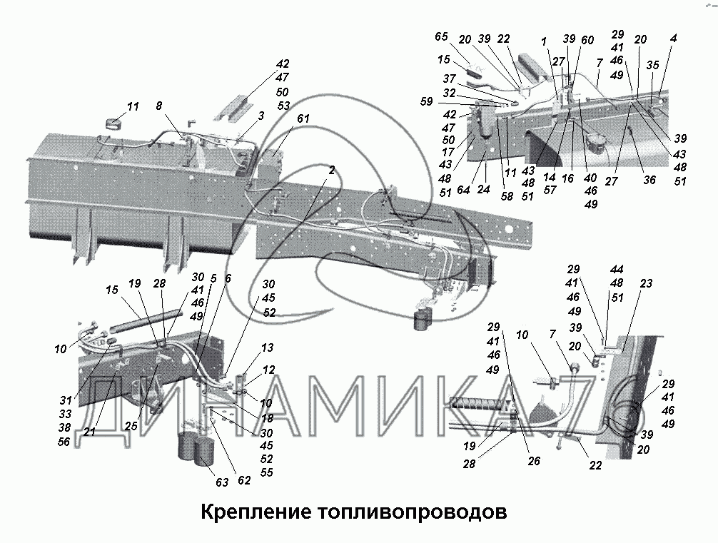 Схемы запчастей предназначены для справочных целей! Мы продаем не все запчасти от Крепление топливопроводов на МАЗ-533731, представленные в этом списке.