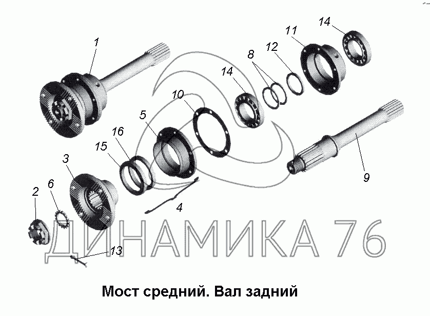 Мост средний. Вал задний — МАЗ-533731: