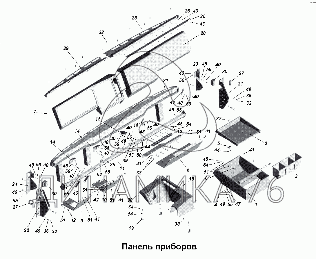 Схемы запчастей предназначены для справочных целей! Мы продаем не все запчасти от Панель приборов на МАЗ-533731, представленные в этом списке.