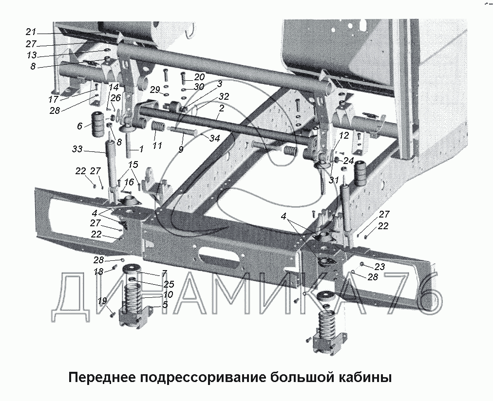 Переднее подрессоривание большой кабины — МАЗ-533731: