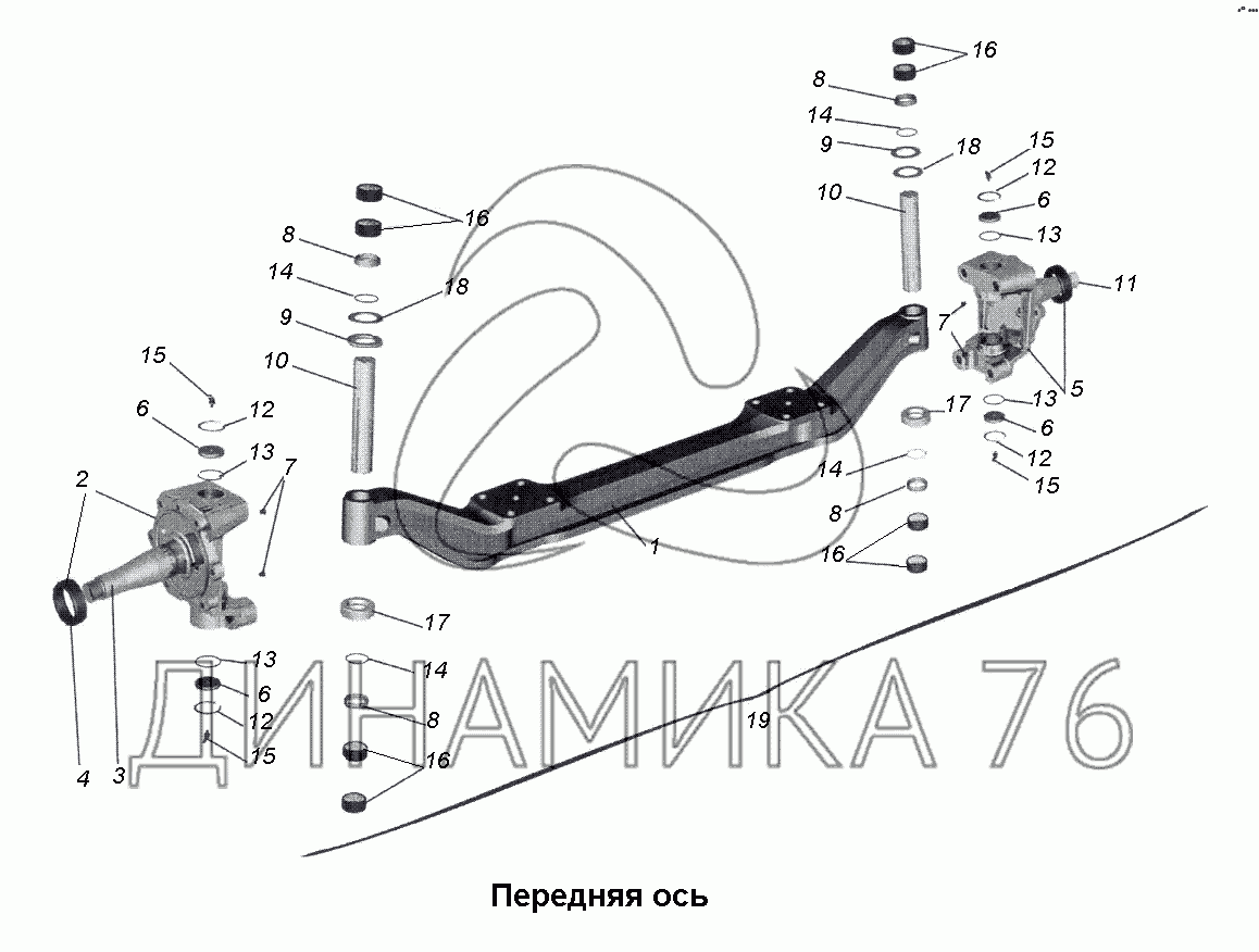 Передняя ось (2) на МАЗ-533731 (до 2012 г.)