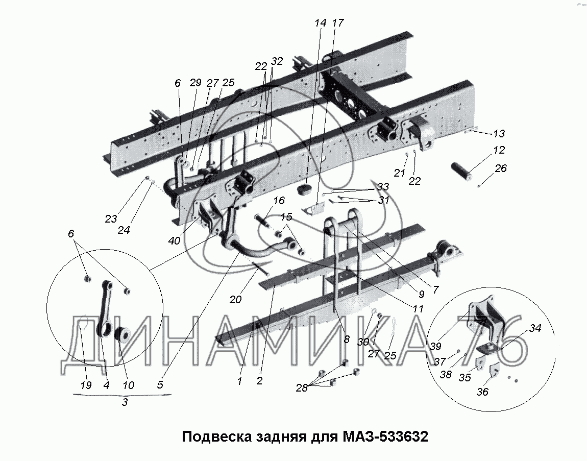 Перечень комплектующих от Подвеска задняя для МАЗ-533632 на МАЗ-533731