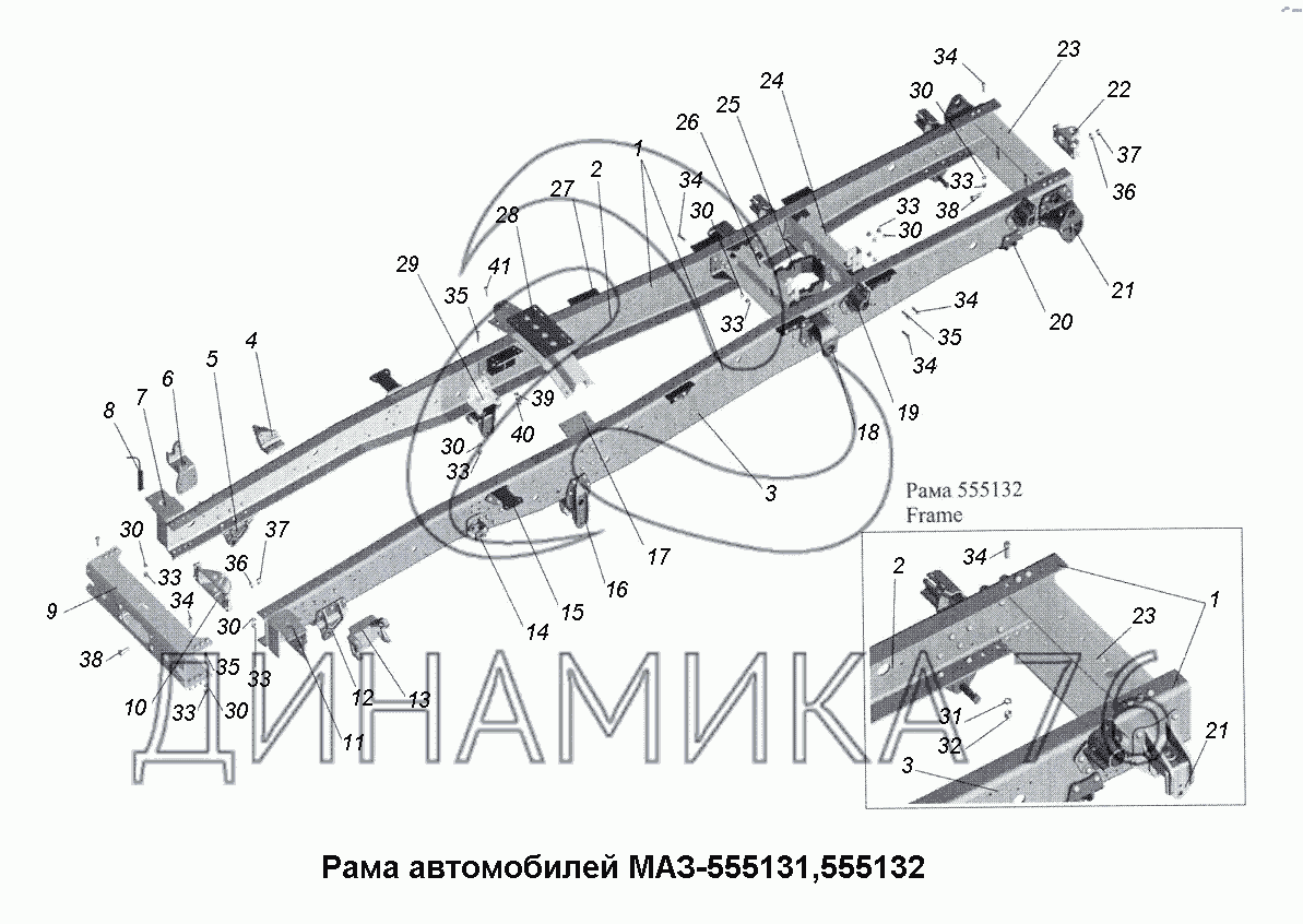 Рама автомобилей МАЗ-555131, 555132 — МАЗ-533731: