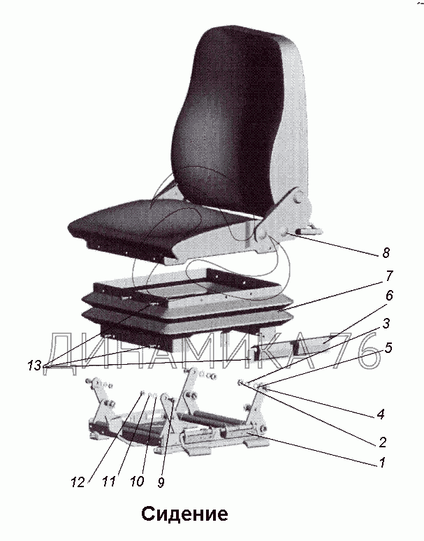 Перечень комплектующих от Сидение на МАЗ-533731