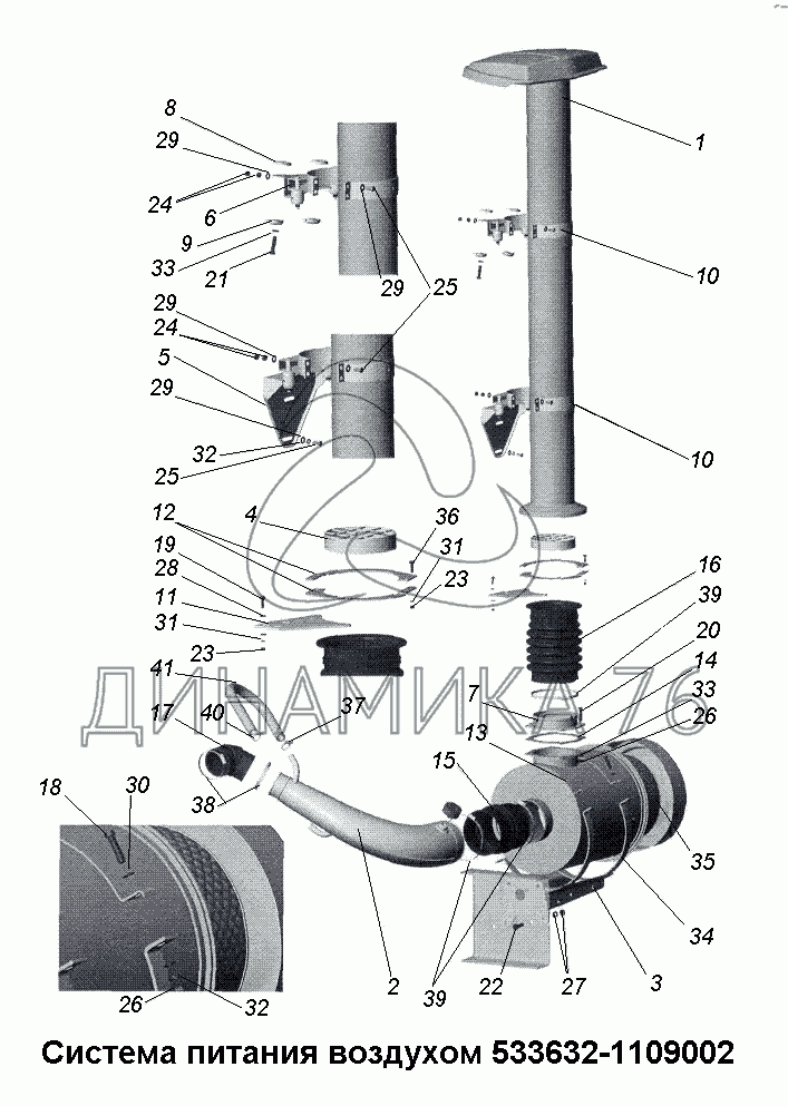 Система питания воздухом 533632-1109002 — МАЗ-533731: