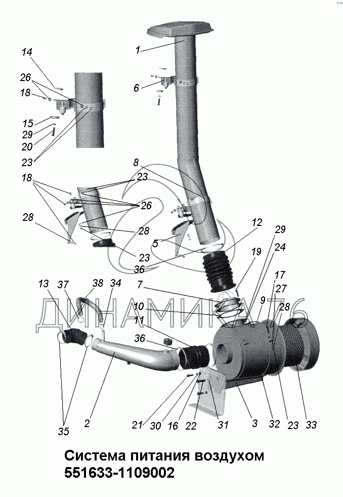 Система питания воздухом 551633-1109002 на МАЗ-533731 (до 2012 г.)