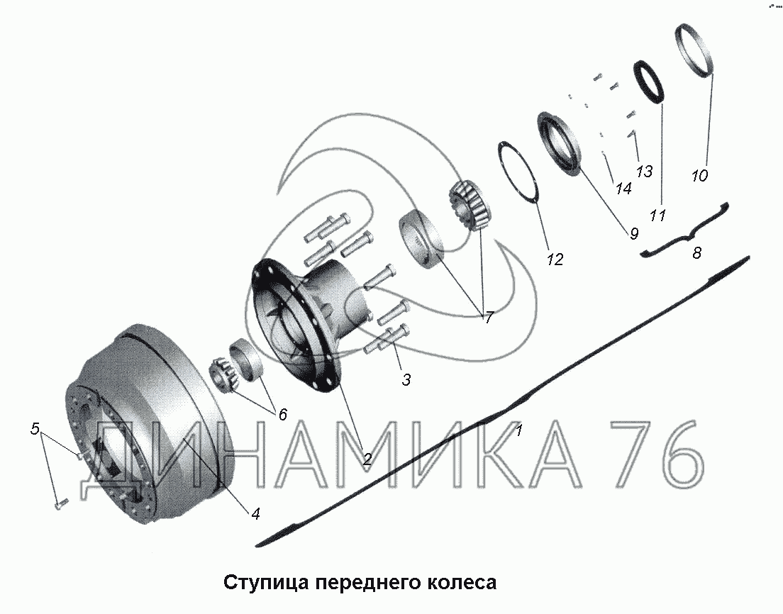 Перечень комплектующих от Ступица переднего колеса на МАЗ-533731
