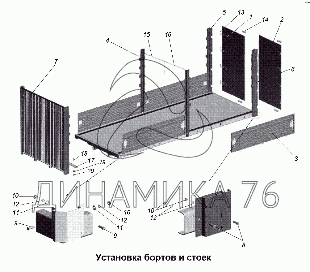 Перечень комплектующих от Установка бортов и стоек на МАЗ-533731