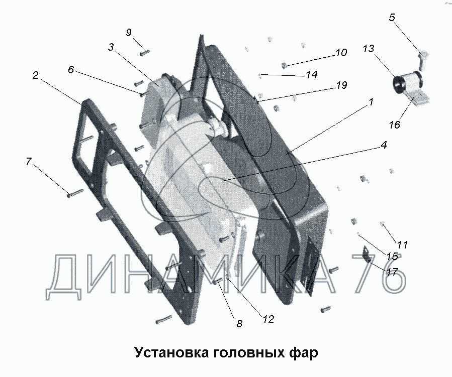 Перечень комплектующих от Установка головных фар на МАЗ-533731