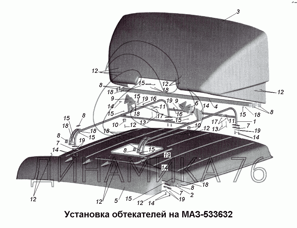 Перечень комплектующих от Установка обтекателей на МАЗ-533632 на МАЗ-533731