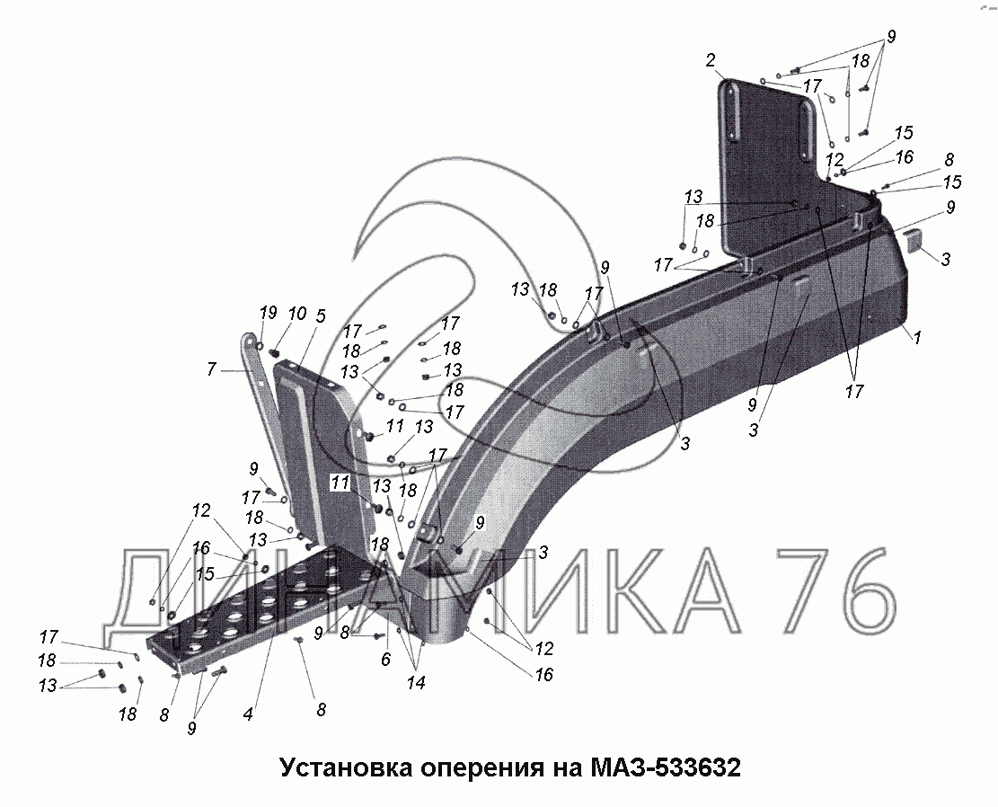 Перечень комплектующих от Установка оперения на МАЗ-533632 на МАЗ-533731