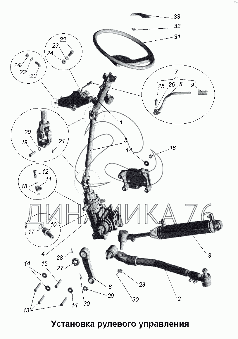 Перечень комплектующих от Установка рулевого управления на МАЗ-533731