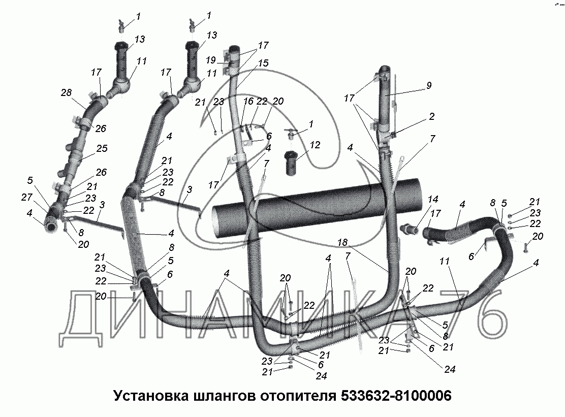 Перечень комплектующих от Установка шлангов отопителя 533632-8100006 на МАЗ-533731