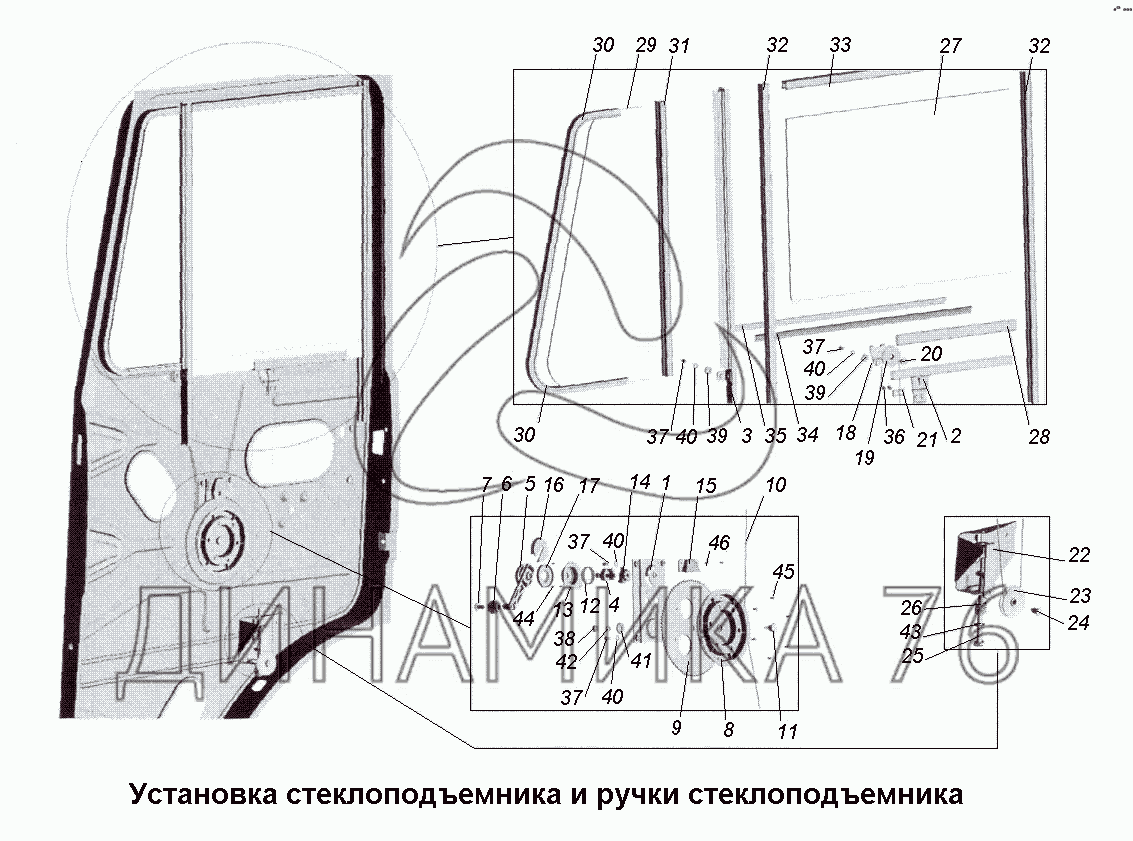 Установка стеклоподъемника и ручки стеклоподъемника — МАЗ-533731: