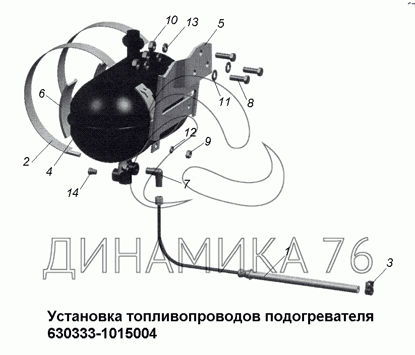 Перечень комплектующих от Установка топливопроводов подогревателя 630333-1015004 на МАЗ-533731
