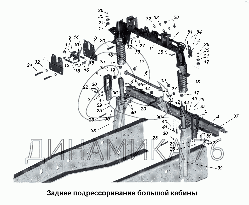 Заднее подрессоривание большой кабины — МАЗ-533731: