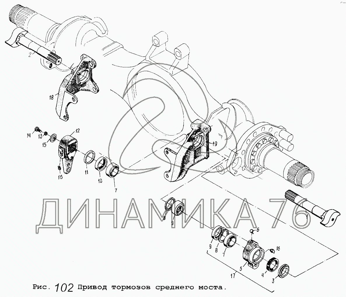 Перечень комплектующих от Привод тормозов среднего моста на МАЗ-5337
