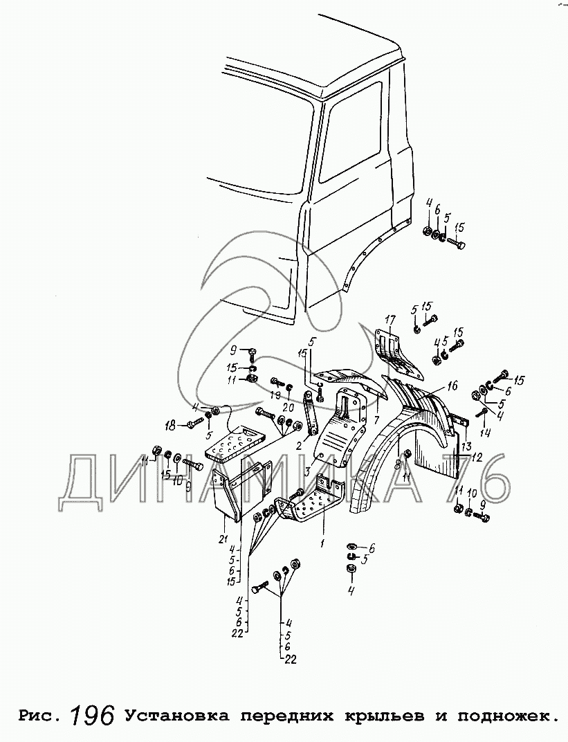 Перечень комплектующих от Установка передних крыльев и подножек на МАЗ-5337