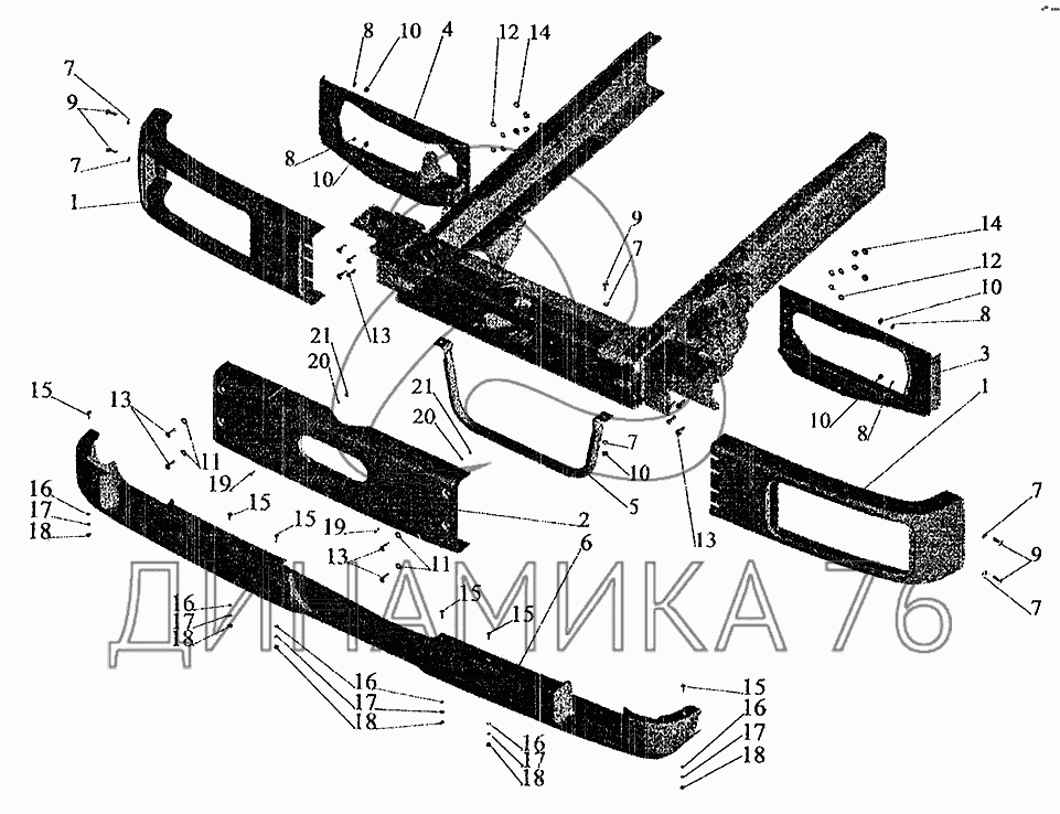 Перечень комплектующих от Крепление бампера на МАЗ-5337 (2005)
