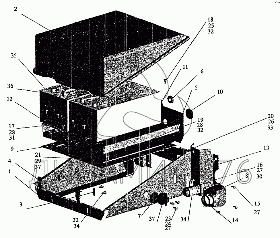 Перечень комплектующих от Установка аккумуляторных батарей на МАЗ-5337 (2005)