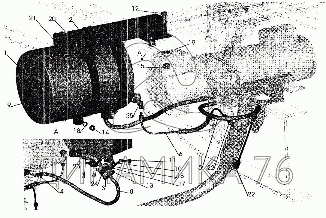 Установка топливопроводов подогревателя — МАЗ-5337 (2005):