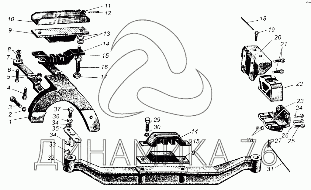 Крепление силового агрегата на МАЗ-5429 (до 2003 г.)