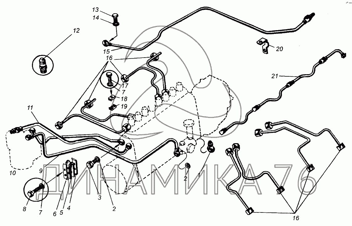 Топливные трубопроводы двигателя ЯМЗ-238 — МАЗ-5429: