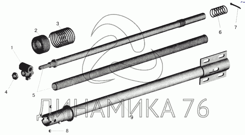 Перечень комплектующих от Механизм промежуточный на МАЗ-543202