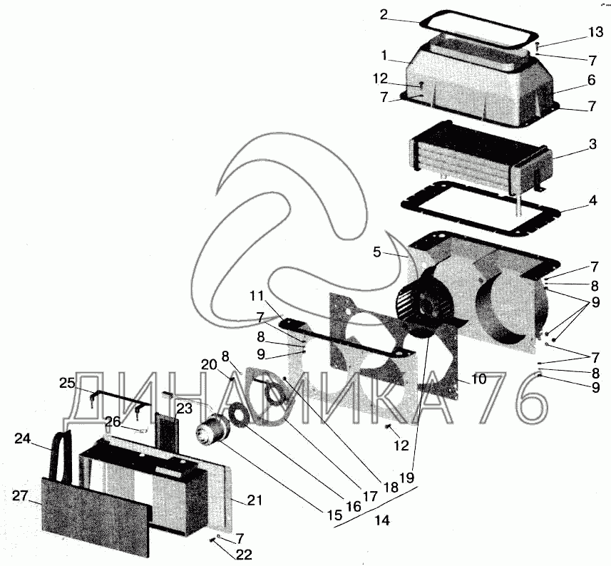 Перечень комплектующих от Отопитель на МАЗ-543202