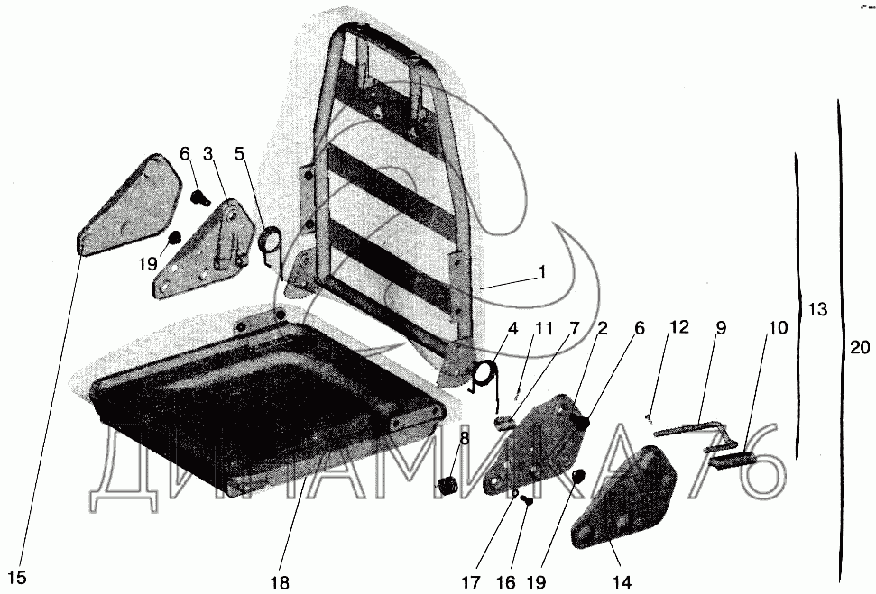 Схемы запчастей предназначены для справочных целей! Мы продаем не все запчасти от Подушка и спинка сидения на МАЗ-543202, представленные в этом списке.