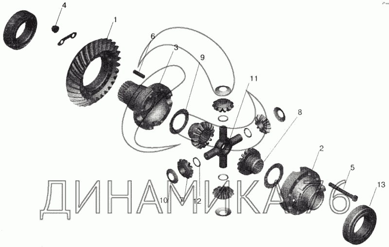 Перечень комплектующих от Редуктор среднего моста. Дифференциал на МАЗ-543202