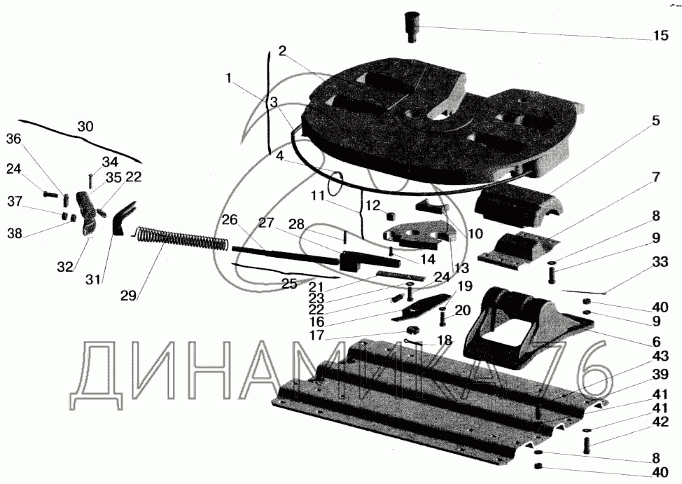 Схемы запчастей предназначены для справочных целей! Мы продаем не все запчасти от Седельно-сцепное устройство на МАЗ-543202, представленные в этом списке.
