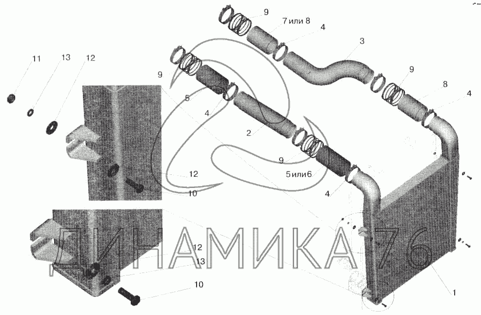 Схемы запчастей предназначены для справочных целей! Мы продаем не все запчасти от Система охлаждения наддувочного воздуха на МАЗ-543202, представленные в этом списке.