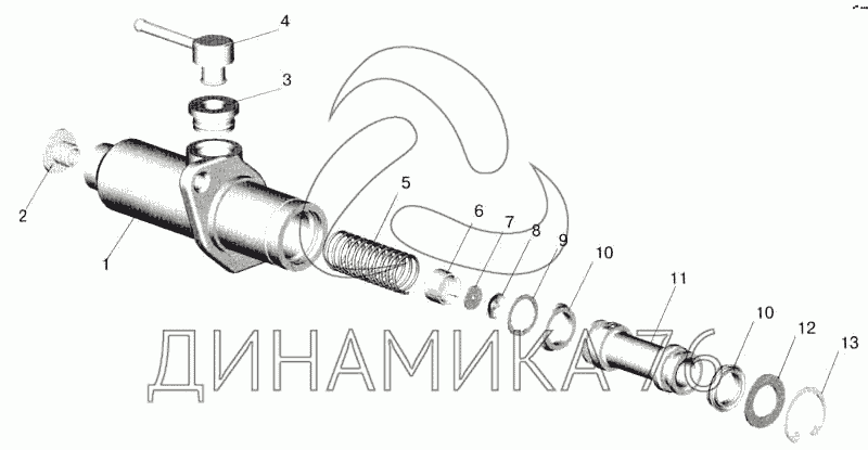 Перечень комплектующих от Цилиндр подпедальный на МАЗ-543202