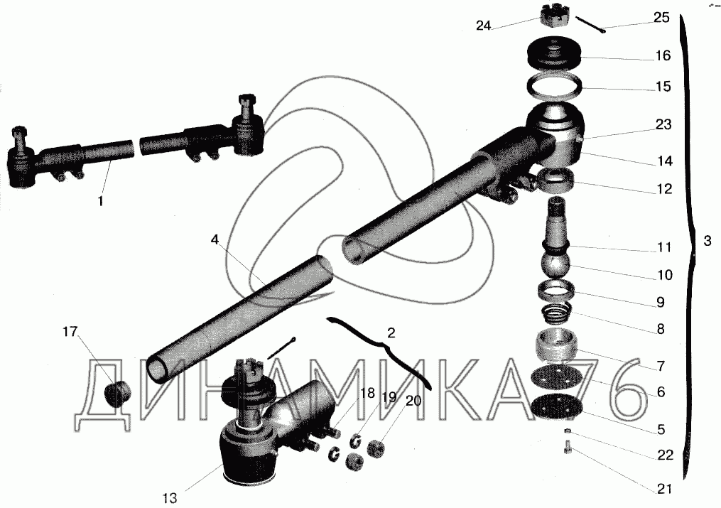 Перечень комплектующих от Тяга поперечная рулевая на МАЗ-543202
