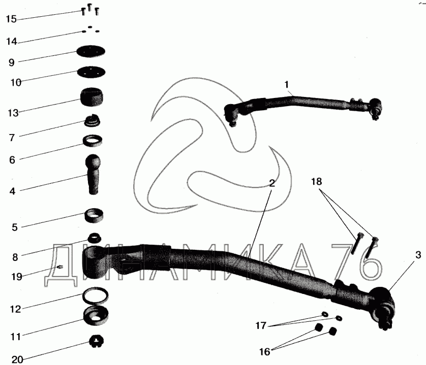 Перечень комплектующих от Тяга продольная на МАЗ-543202