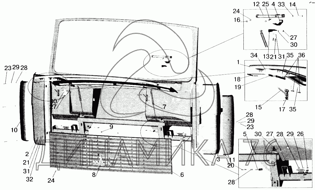 Схемы запчастей предназначены для справочных целей! Мы продаем не все запчасти от Установка облицовки и боковых щитков на МАЗ-543202, представленные в этом списке.