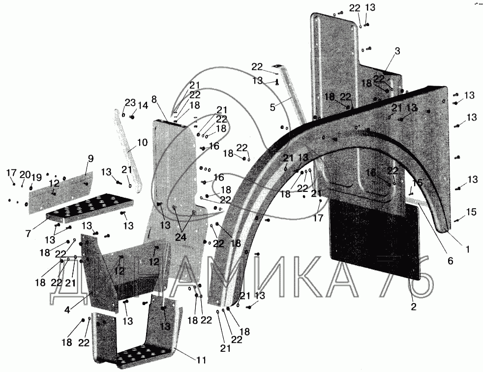 Схемы запчастей предназначены для справочных целей! Мы продаем не все запчасти от Установка оперения на большую кабину на МАЗ-543202, представленные в этом списке.