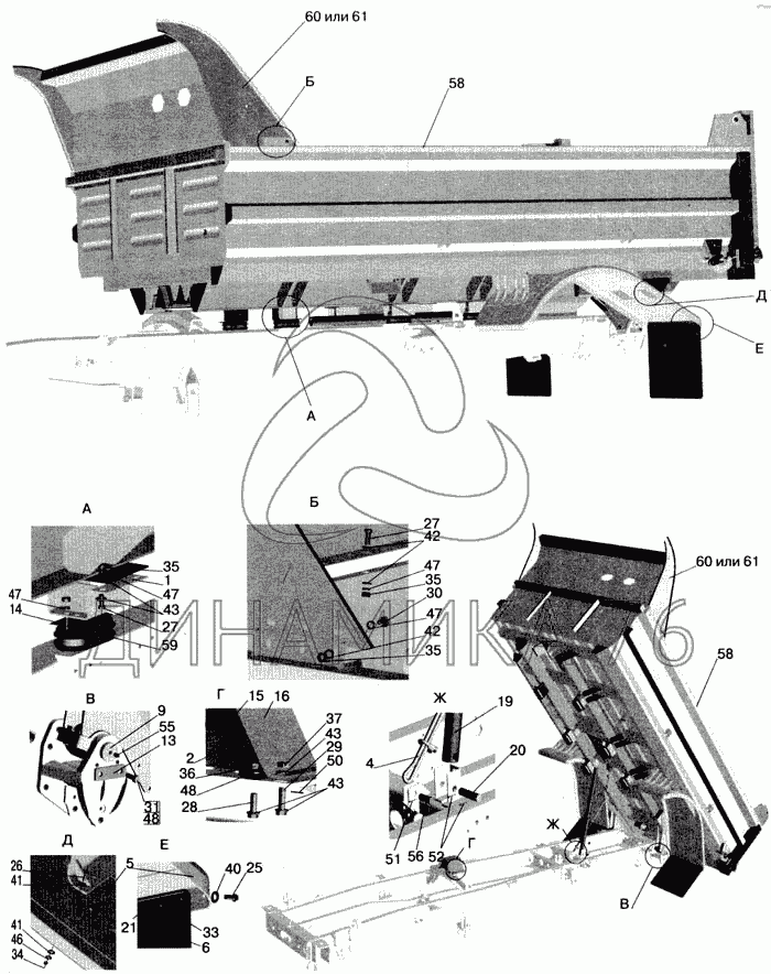 Перечень комплектующих от Установка платформы 555102-8500002 на МАЗ-543202