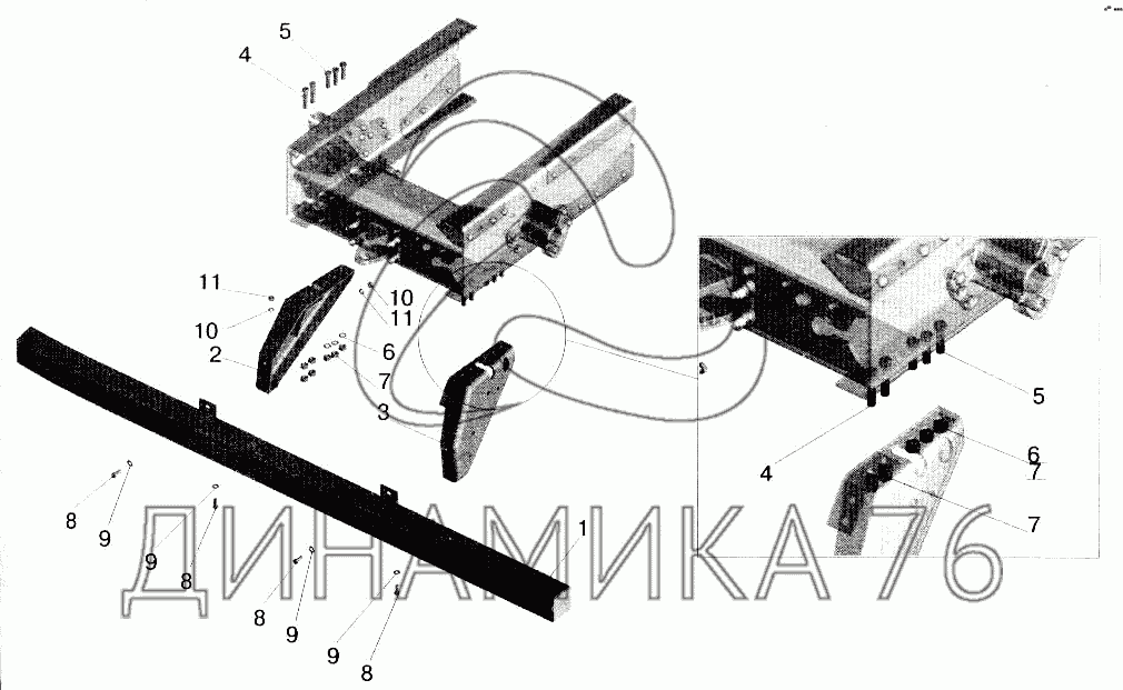 Схемы запчастей предназначены для справочных целей! Мы продаем не все запчасти от Установка заднего бампера на МАЗ-543202, представленные в этом списке.
