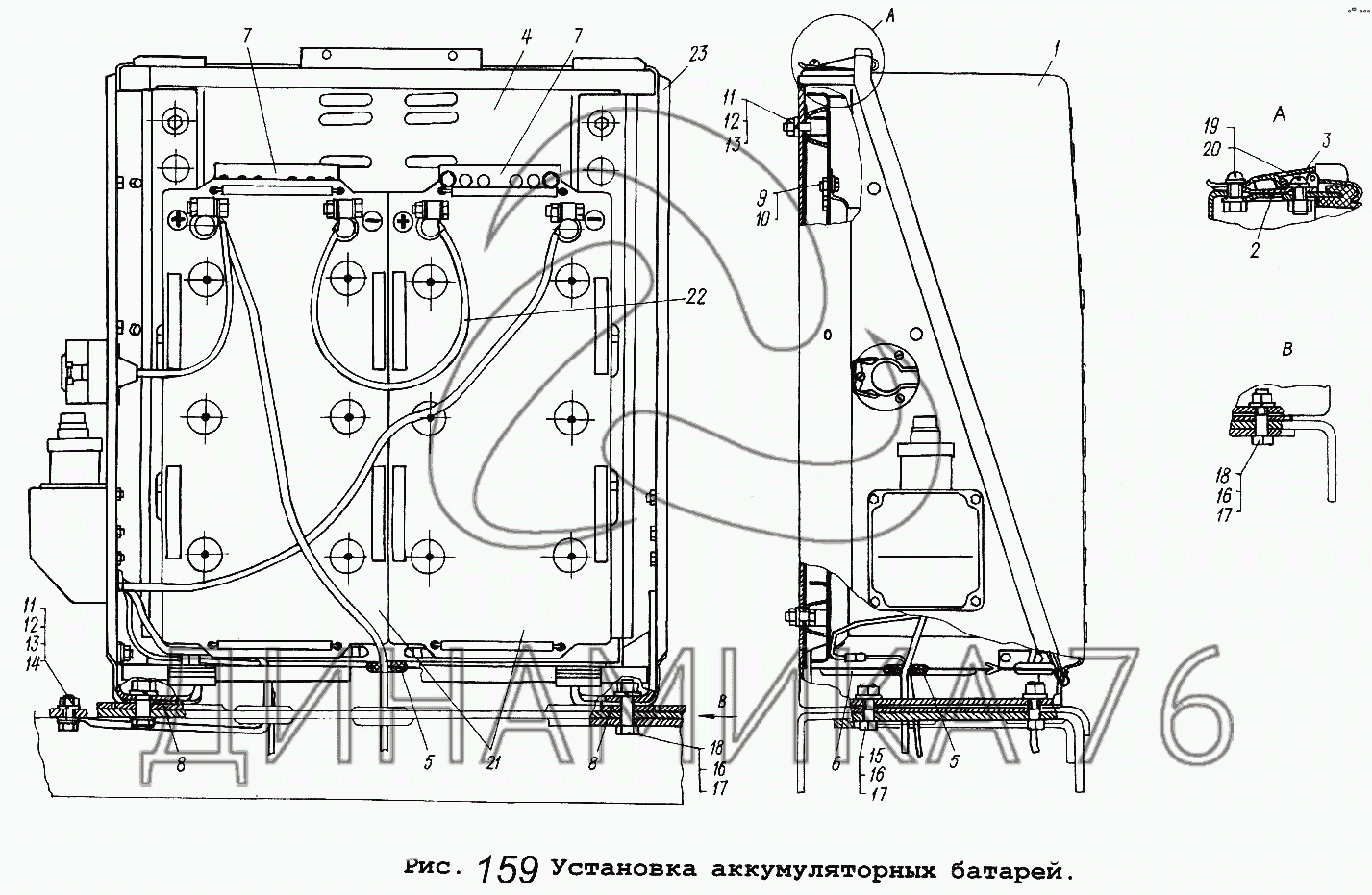 Установка аккумуляторных батарей — МАЗ-54323:
